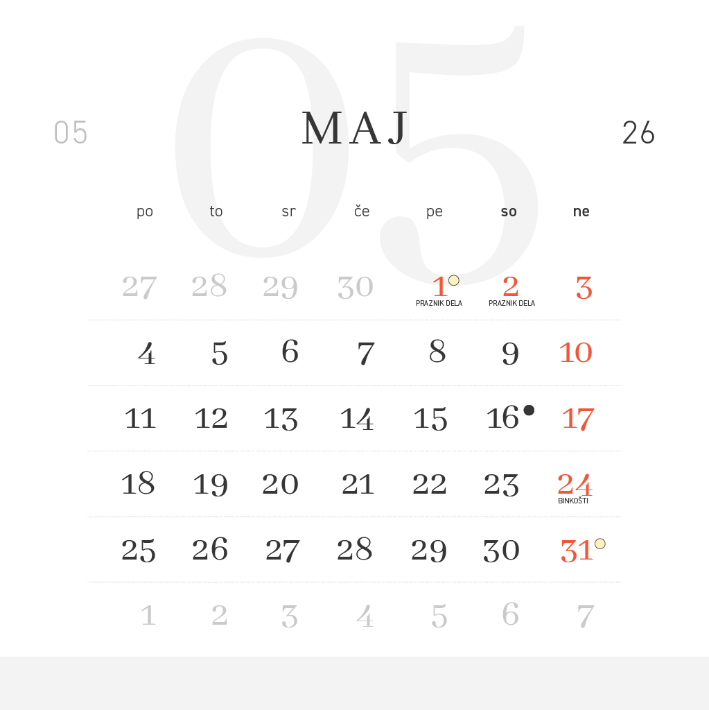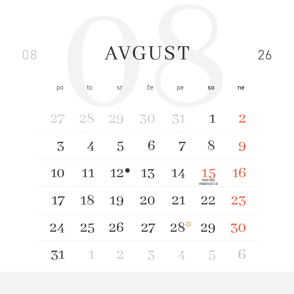 mesecu novembru in decembru, kar pa ne pomeni, da vam koledar ne natisnemo kadarkoli med letom.