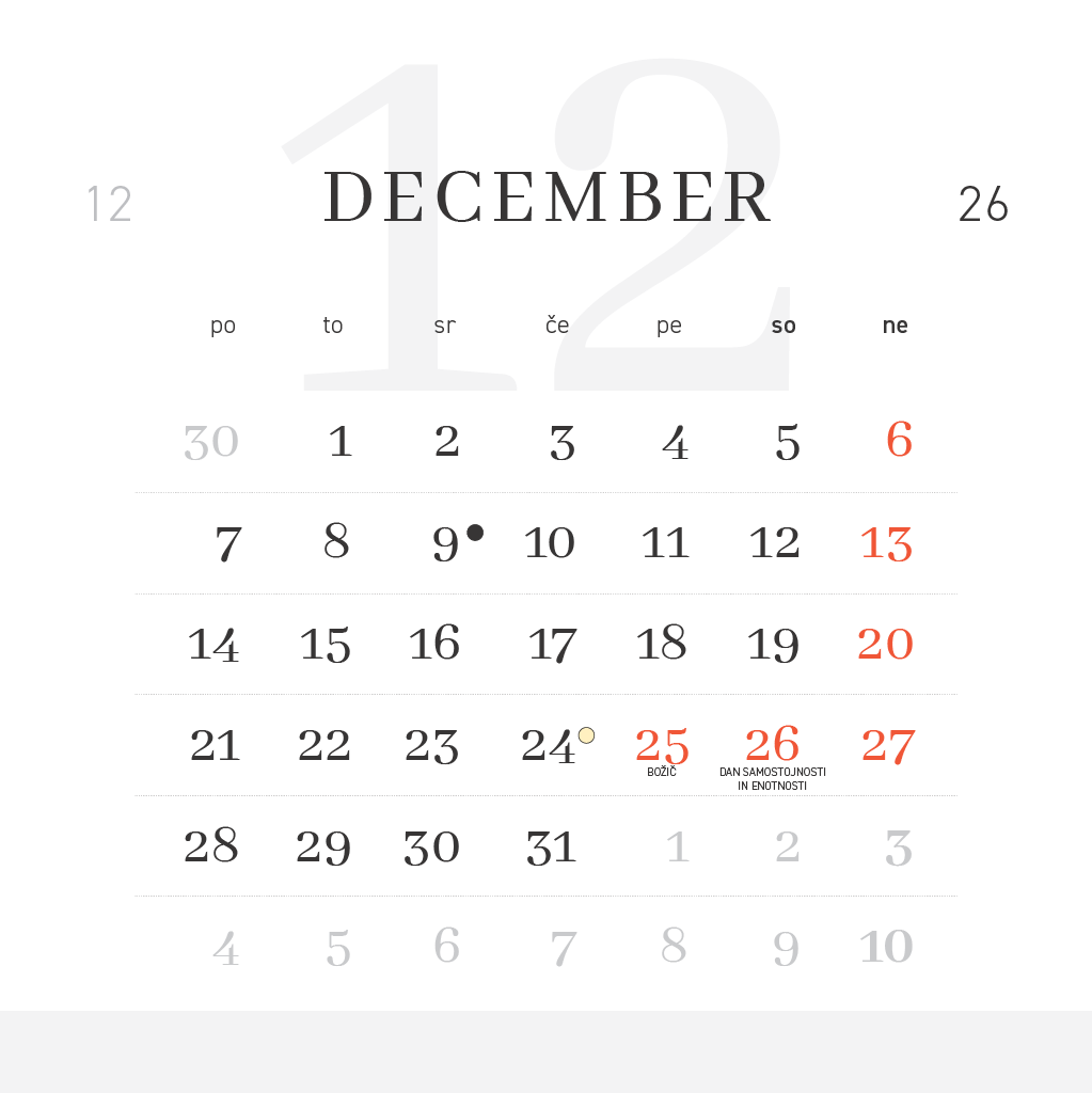 mesecu novembru in decembru, kar pa ne pomeni, da vam koledar ne natisnemo kadarkoli med letom.