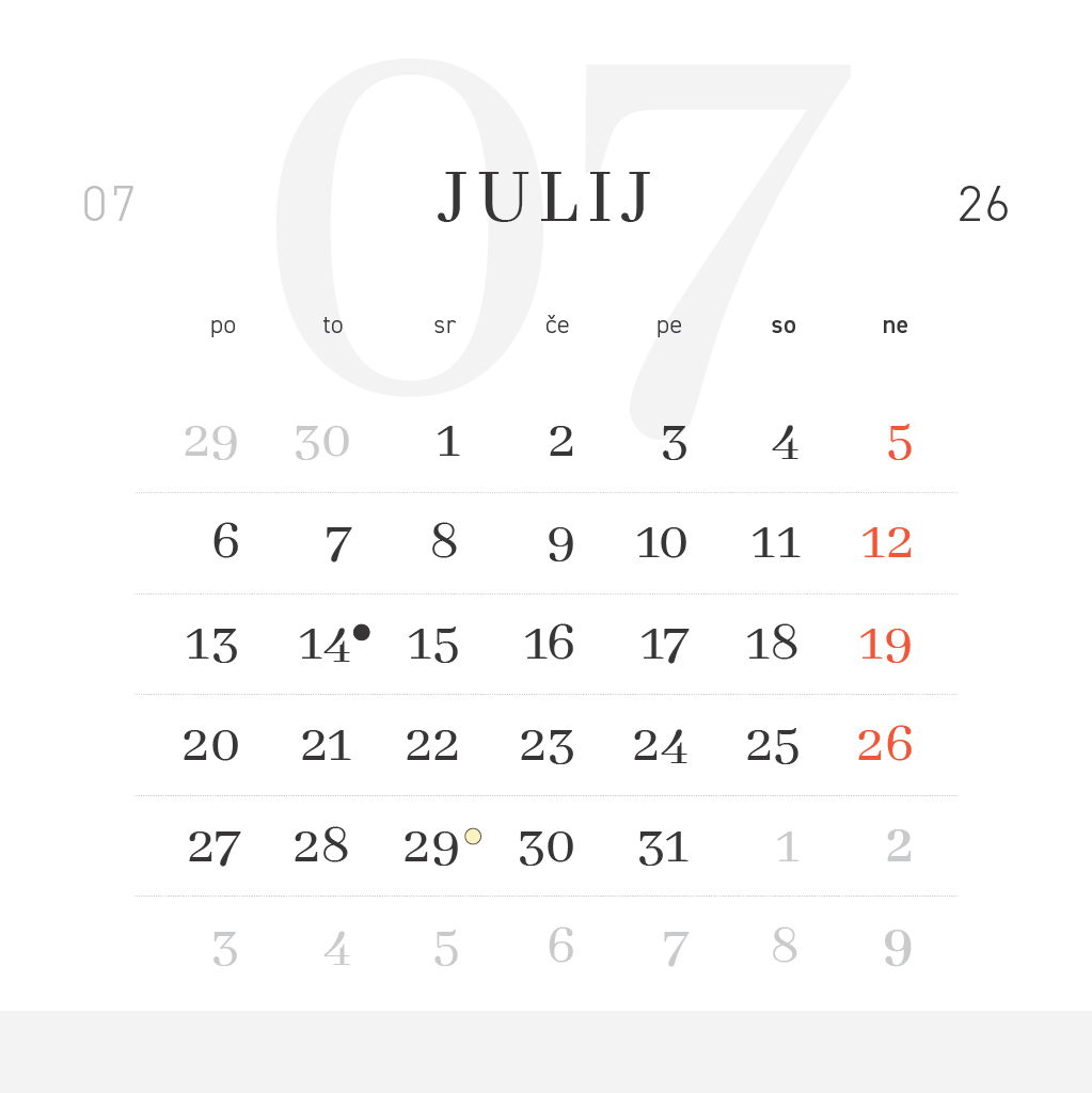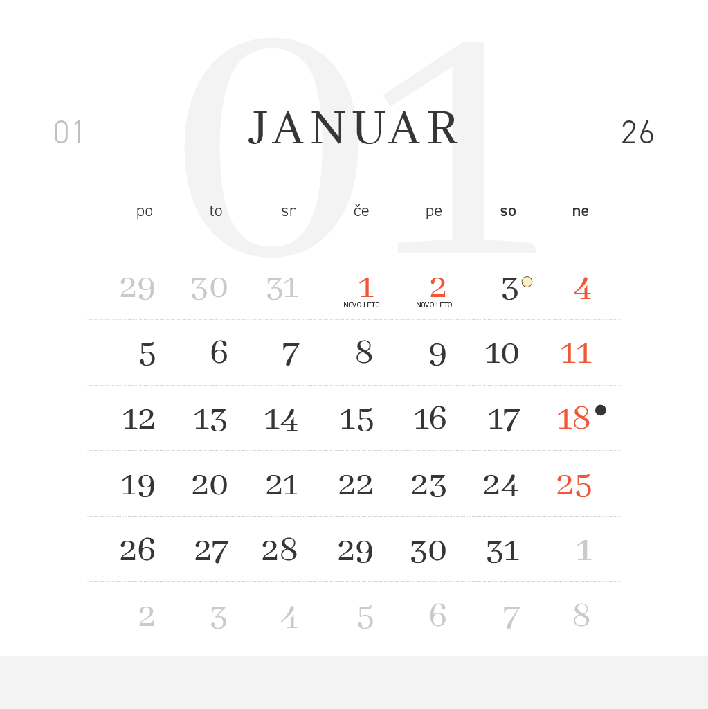 mesecu novembru in decembru, kar pa ne pomeni, da vam koledar ne natisnemo kadarkoli med letom.